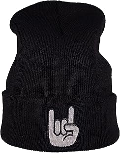 Strickmütze: Metalhand - Devil Horns - Mano Cornuta - Rock - Heavy Metal/Wollmütze/Wintermütze/Rollmütze/Long Beanie/Mütze/Seemannsmütze/Unisex Herren Damen/Cool Design Logo