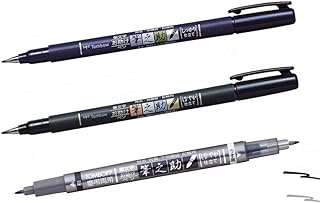 Pinselstifte „Fudenosuke“ von Tombow, harter Stift, weicher Stift und Stift mit doppelter Spitze (Schwarz und Grau), 3 Stück