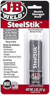 Find many great new & used options and get the best deals for J-B Weld SteelStik 8267 Steel Reinforced Epoxy Putty - 57g at the best online prices at eBay! Free delivery for many products! J-B Weld SteelStik 8267 Steel Reinforced Epoxy Putty - 57g for sale online | eBay J-B Weld Stik is a hand kneadable, steel-reinforced epoxy putty adhesive/sealant that will plug holes and make permanent repairs on wet and dry surfaces. It will even cure completely submerged in water or GASOLINE! Simply knead a portion necessary for the repair thoroughly with your fingers and apply.