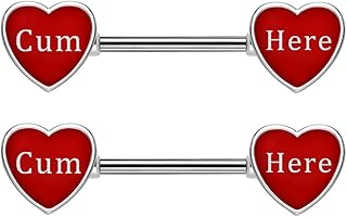 Brustwarzenringe, Barbell, 2 Stück, 14 g, 316L Edelstahl, Herzform, gewölbt, Cum Here