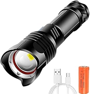 Taktische LED-Taschenlampe XHP50 Ultra Lumen 6000 High Lumen, USB wiederaufladbar, zoombar, 5 Modi, IP68 wasserdicht, ultrahelle Hand-Taschenlampe, ideal für Outdoor-Taschenlampe mit 26650 Akku