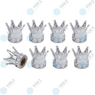 YOU.S Alu Kronen Ventilkappen Silber/Chrom-Optik mit Dichtung Ventil Kappen Abdeckung für Auto PKW LKW (8 Stück)
