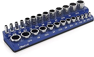 Olsa Tools Magnetischer Steckschlüssel-Organizer | 3/8-Zoll-Antrieb | SAE blau | hält 26 Steckdosen | Premium-Qualität Werkzeug-Organizer