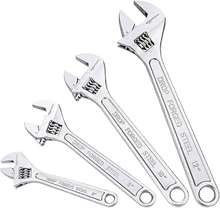 Amazon Basics 4-teiliges Rollgabelschlüssel-Set, verchromt, mit Messskala in Zoll und mm, mit: 6 Zoll (150 mm), 8 Zoll (200 mm), 10 Zoll (250 mm), 12 Zoll (300 mm)