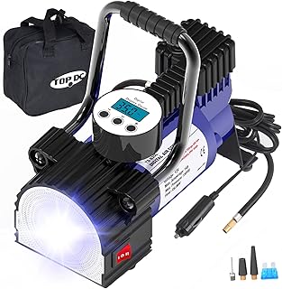 TOPDC Luftkompressor Reifenfüller, 12 V DC Digitaler Reifenfüller mit LED-Licht für Auto, Fahrrad, Motorrad, Basketball und andere